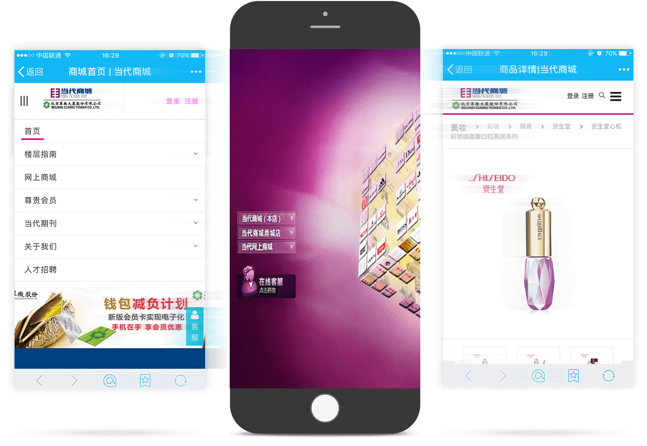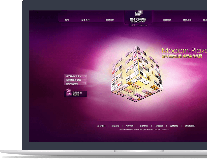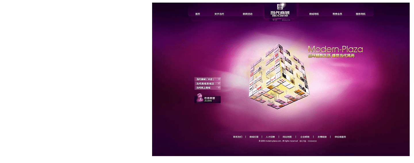 網(wǎng)站主視覺(jué)采用交互技術(shù),有效傳達當代商城整體品牌形象。