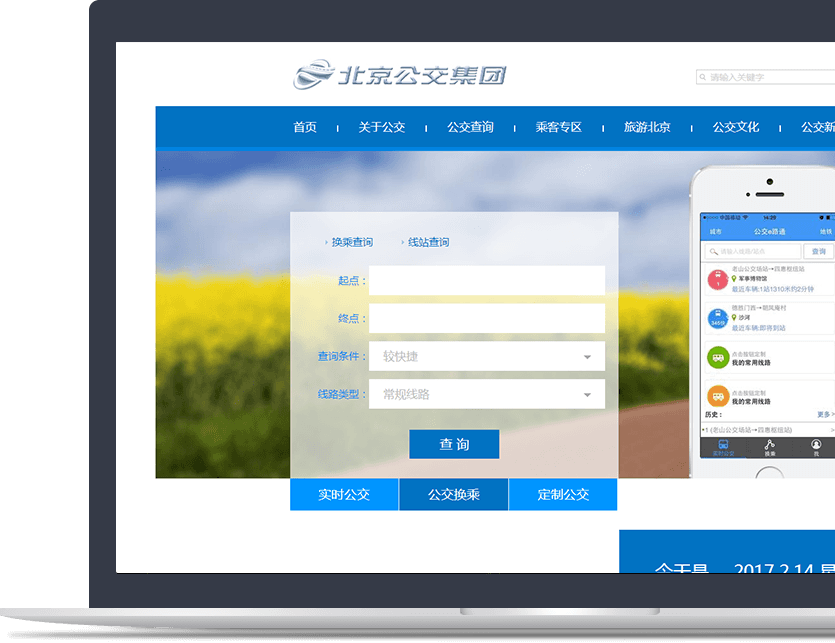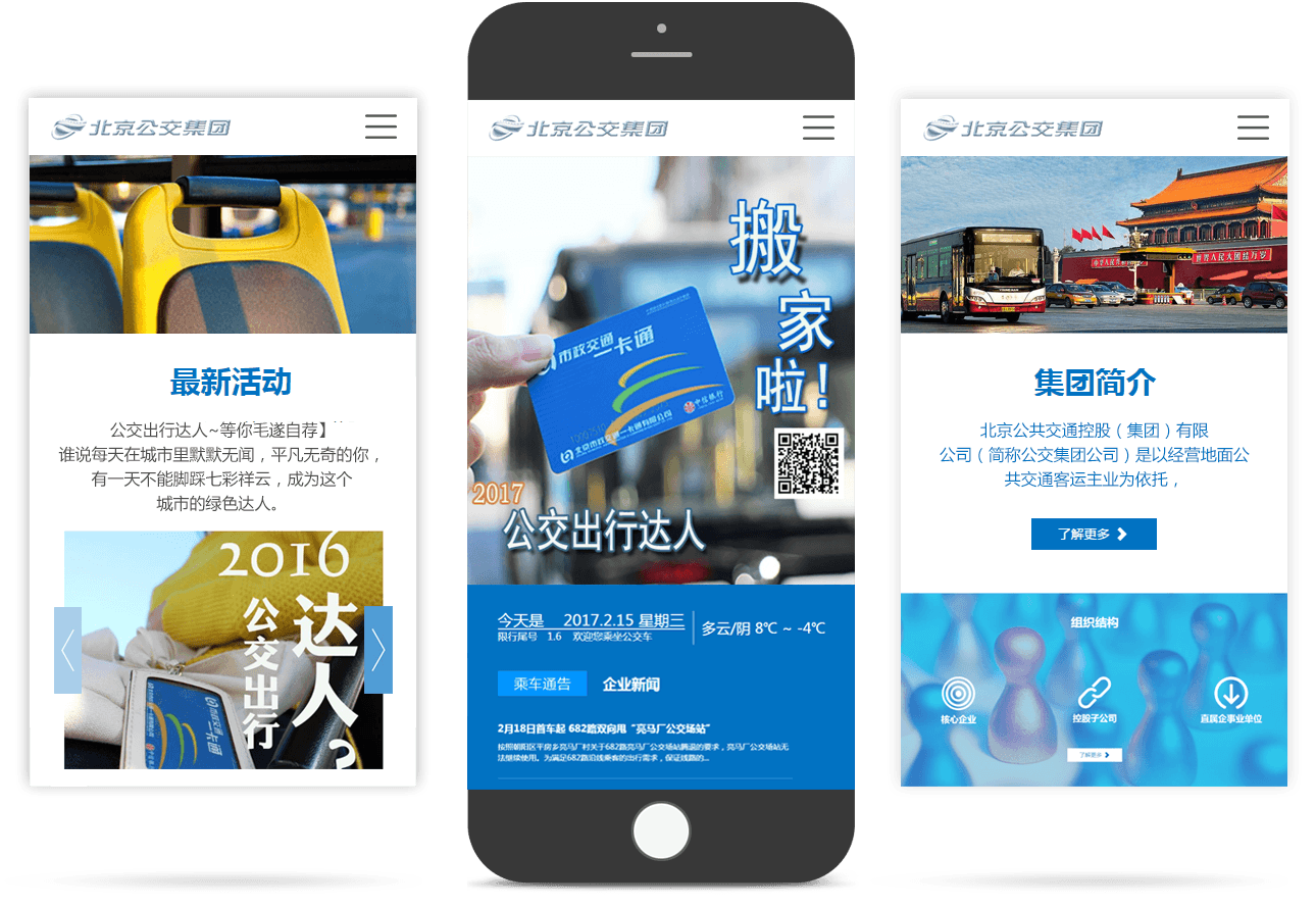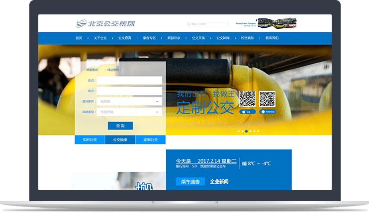 新官網(wǎng)以藍色為主色調,整體清新明快,彰顯新時(shí)代的“智慧公交”理念。