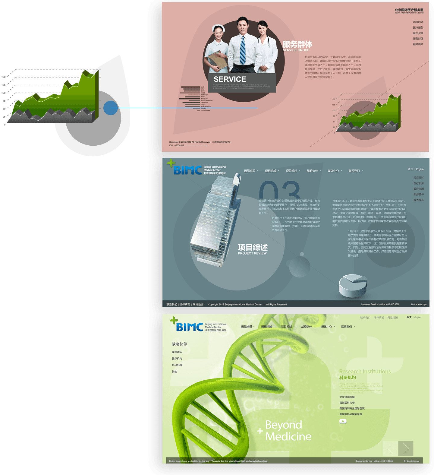 網(wǎng)站利用視頻元素和FLASH技術(shù),實(shí)現三維立體的動(dòng)畫(huà)表現,展示北京國際醫療服務(wù)區全貌,形成強烈的視覺(jué)感受,塑造北京國際醫療服務(wù)區的品牌形象。同時(shí),網(wǎng)站中大量鼠標交互效果,充分調動(dòng)訪(fǎng)問(wèn)者的興趣,提升用戶(hù)的瀏覽體驗。