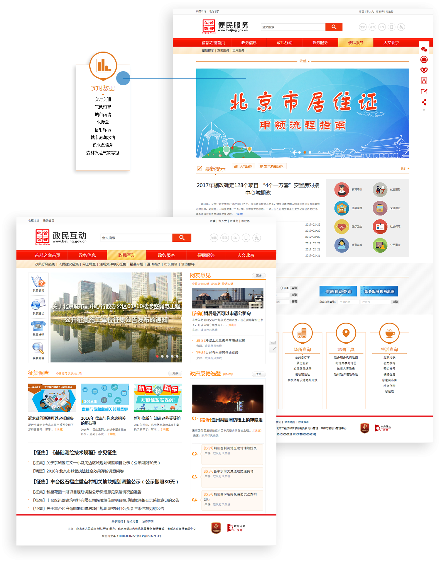 首都之窗辦事服務(wù)頻道作為政府門(mén)戶(hù)網(wǎng)站最重要、最常用的平臺,信息量大,用戶(hù)需求復雜,新鴻儒精密梳理用戶(hù)訪(fǎng)問(wèn)邏輯,將網(wǎng)上辦事流程實(shí)現最簡(jiǎn)化,極大的方便了群眾。首都之窗至今連續保持政府網(wǎng)站評比排名第一。