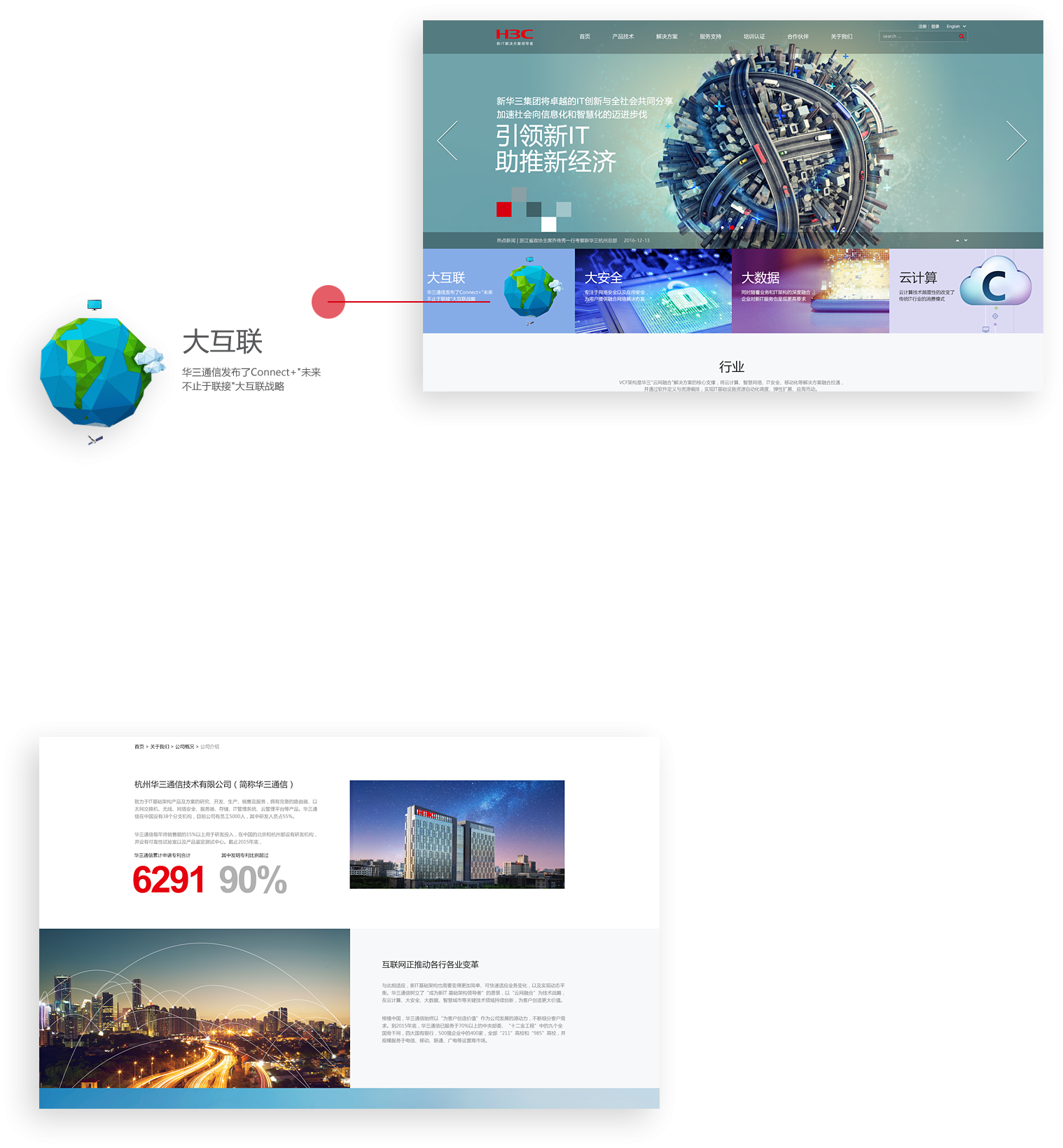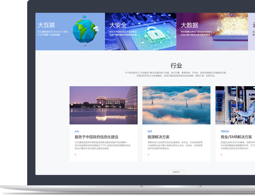 將“科技感”“創(chuàng )新力”融入品牌官網(wǎng),順應色塊化的流行趨勢,從視覺(jué)、交互、情感多維度提升品牌感知力, 成功打造H3C在互聯(lián)網(wǎng)領(lǐng)域的品牌標簽。