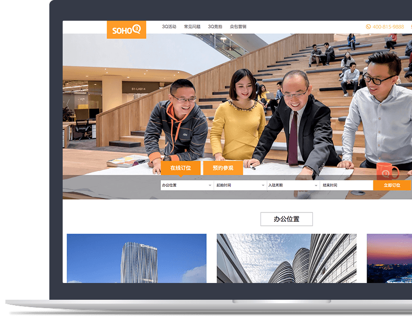 SOHO中國與新鴻儒持續合作多個(gè)項目,包括SOHO中國官網(wǎng)、多個(gè)項目網(wǎng)站群等,并以O2O電商服務(wù)平臺項目 (SOHO3Q/SOHO3Q APP)助力SOHO中國開(kāi)啟互聯(lián)網(wǎng)轉型之路。