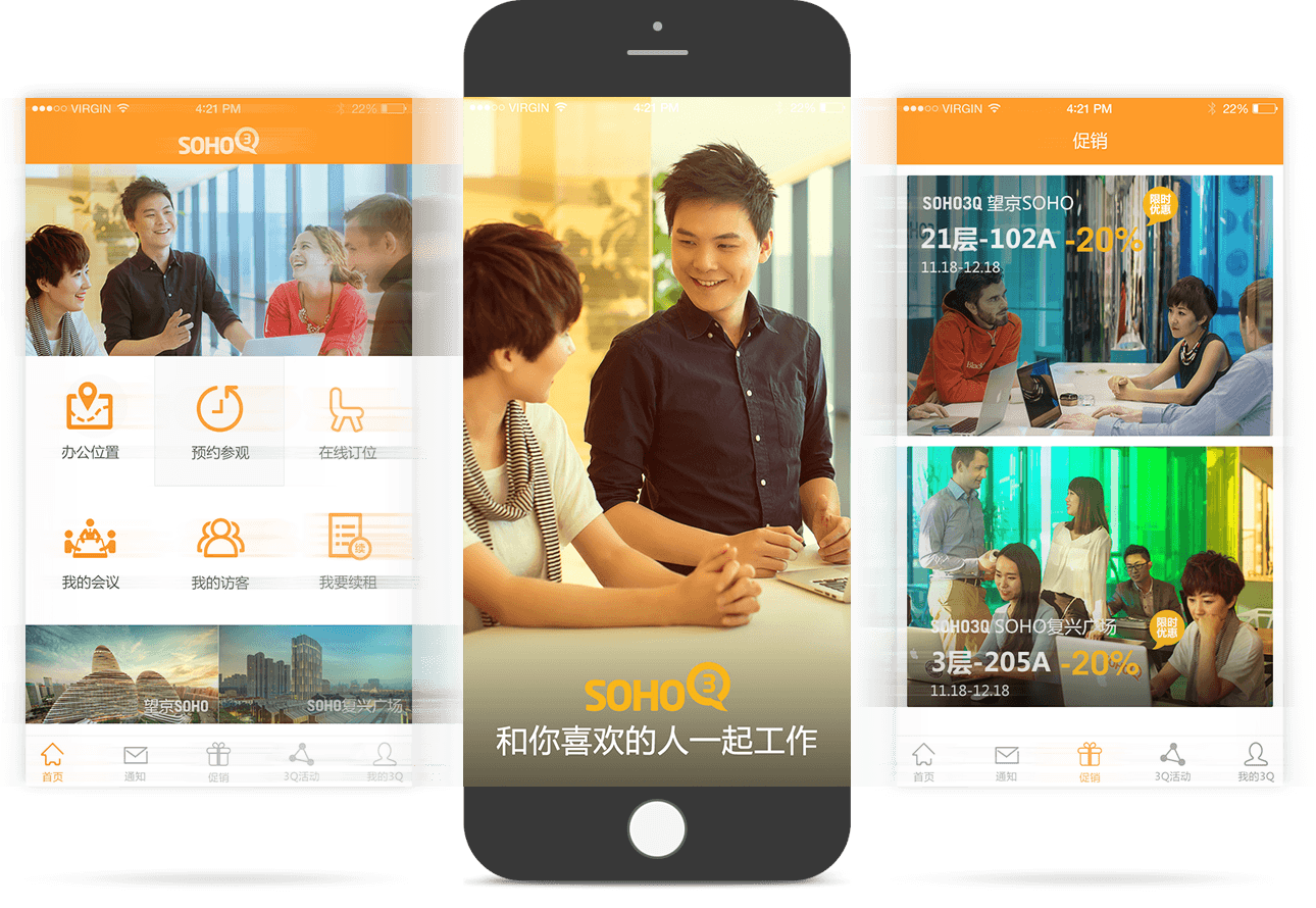 SOHO中國提供了一個(gè)現代化的共享辦公空間,并且面向短租、個(gè)性化租賃人群打造了自由、平等、多元的O2O電商服務(wù)平臺,不同行業(yè)、不同背景的人可以一起在線(xiàn)交流、碰撞、分享,用戶(hù)登錄官網(wǎng)即可完成自由選房、訂房、簽約、付款等完整的租賃流程。