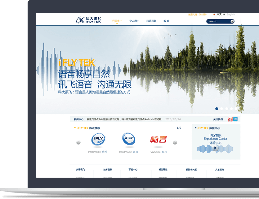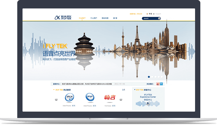 科大訊飛整體頁(yè)面簡(jiǎn)潔、信息高效,互動(dòng)性效果強!