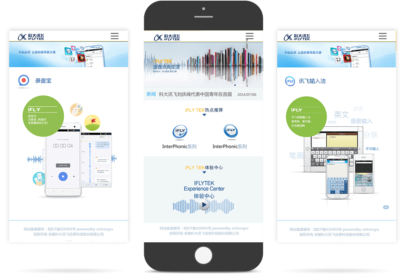 網(wǎng)站以藍色為主要色調,以“語(yǔ)音引擎-教育產(chǎn)品 -手機應用-互動(dòng)音樂(lè )-行業(yè)應用-關(guān)于訊飛”為主要欄目導航, 既宣傳了產(chǎn)品,又樹(shù)立了企業(yè)品牌形象,同時(shí)取得了和用戶(hù)進(jìn)行相關(guān)語(yǔ)音產(chǎn)品知識普及的互動(dòng)效果,幫助語(yǔ)音技術(shù)在互聯(lián)網(wǎng) 開(kāi)辟了新的傳播陣地。