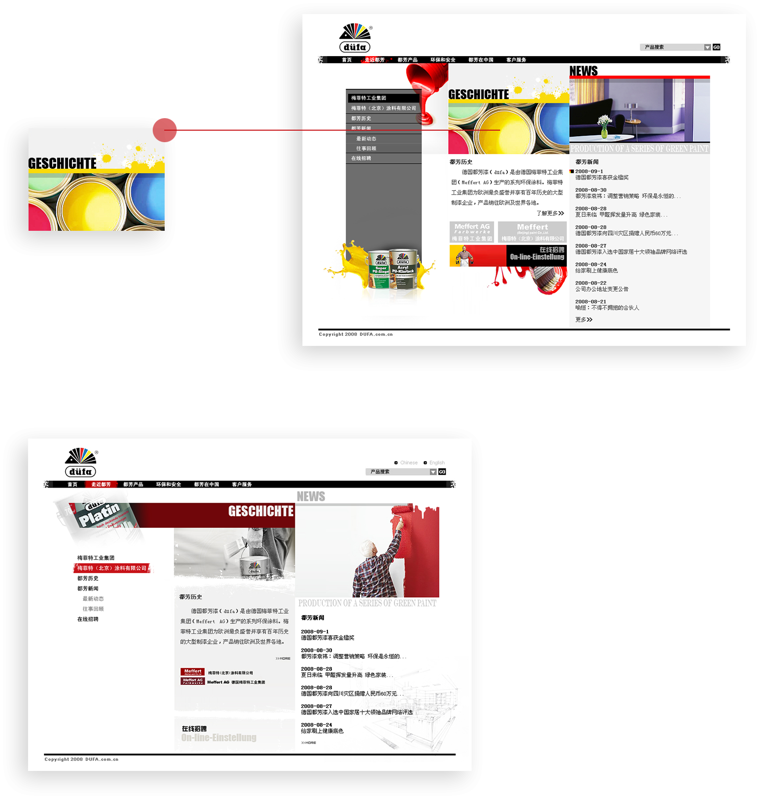 中文官網(wǎng)秉承都芳漆的品質(zhì)和理念,力求做到簡(jiǎn)潔、明快。 整體設計風(fēng)格與集團網(wǎng)站相呼應,同時(shí)尊重中國大眾審 美習慣,表現出中國區官網(wǎng)的獨特個(gè)性和魅力。