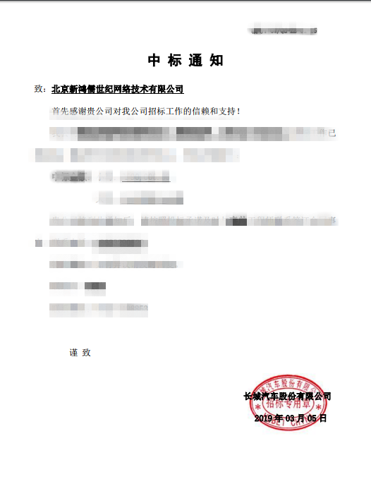 喜報!新鴻儒中標長(cháng)城汽車(chē)網(wǎng)站建設項目