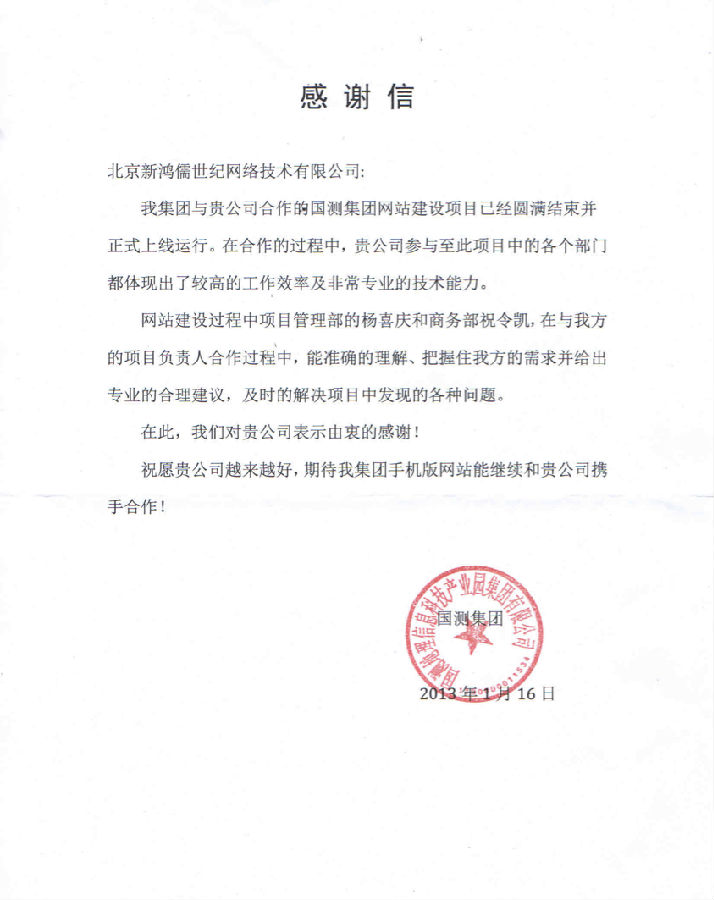 經(jīng)過(guò)新鴻儒整個(gè)項目團隊的不懈努力, 國測集團網(wǎng)站終于如期上線(xiàn)了。