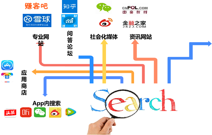 據不完全統計,搜索環(huán)境隨著(zhù)互聯(lián)網(wǎng)發(fā)展變遷,人們在獲取信息時(shí),不僅僅只會(huì )通過(guò)某一類(lèi)搜索引擎作為信息來(lái)源,而是會(huì )通過(guò)多種渠道進(jìn)行查詢(xún),綜合分析后產(chǎn)生購買(mǎi)決策。在泛搜索環(huán)境下用戶(hù)認知品牌觸點(diǎn)逐漸多樣化,例如除百度之外的:購物網(wǎng)站、地圖、新聞門(mén)戶(hù)、微博、旅行網(wǎng)站等。 “搜索”無(wú)處不在,這便意味著(zhù)“用戶(hù)”隨時(shí)可能獲取。