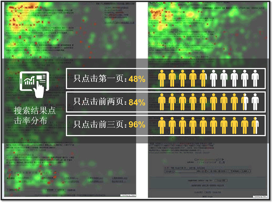 由搜索結果點(diǎn)擊率分布數據可以得出:只有占位在前三頁(yè)才算是有效的信息露出,所以自然搜索優(yōu)化的目標是盡量讓客戶(hù)想展示的信息展示在前三頁(yè),不想展示的敏感信息壓制在后三頁(yè)。SEM\SEO\SMO的優(yōu)化目標就是發(fā)揮各自的優(yōu)勢,讓官網(wǎng)或第三方媒體正面信息保持在前三頁(yè)占位。